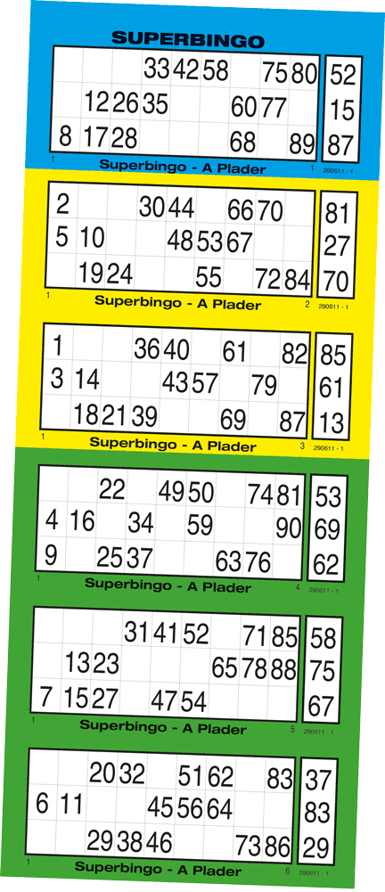 Fremstilles med 6 plader under hinanden med god kraftig perforering mellem hvert lod.